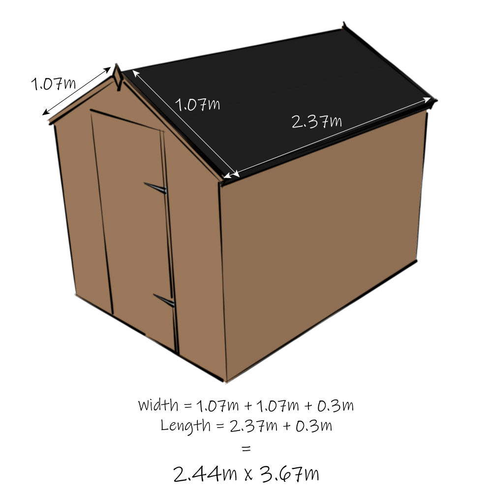 Ordering Tip: Add at least 300mm extra to both the width and length of your shed roof for secure fixing. Allow more for parapet walls or other details.